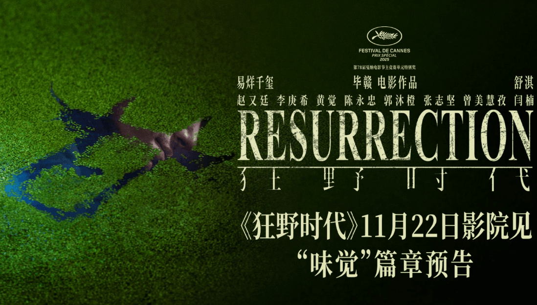 将于11月22日上映的艺术电影《狂野时代》今日发布“味觉”篇章预告及海报。本片由毕赣执导,易烊千玺、舒淇领衔主演,赵又廷特邀主演,李庚希特别出演,黄觉、陈永忠、郭沐橙主演,张志坚、曾美慧孜、闫楠友情出演,并荣获第78届戛纳电影节主竞赛单元特别奖。影片讲述一个怪物通过体验视觉、听觉、味觉、嗅觉、触觉五种感官,穿越一个世纪的狂野幻梦。此前发布的“视觉”和“听觉”篇章预告,导演巧妙运用默片风格、黑色电影风格极致调动观众感官情绪,观众跟着“迷魂者”(易烊千玺 饰)一同感受这场穿越一个世纪的感官体验。